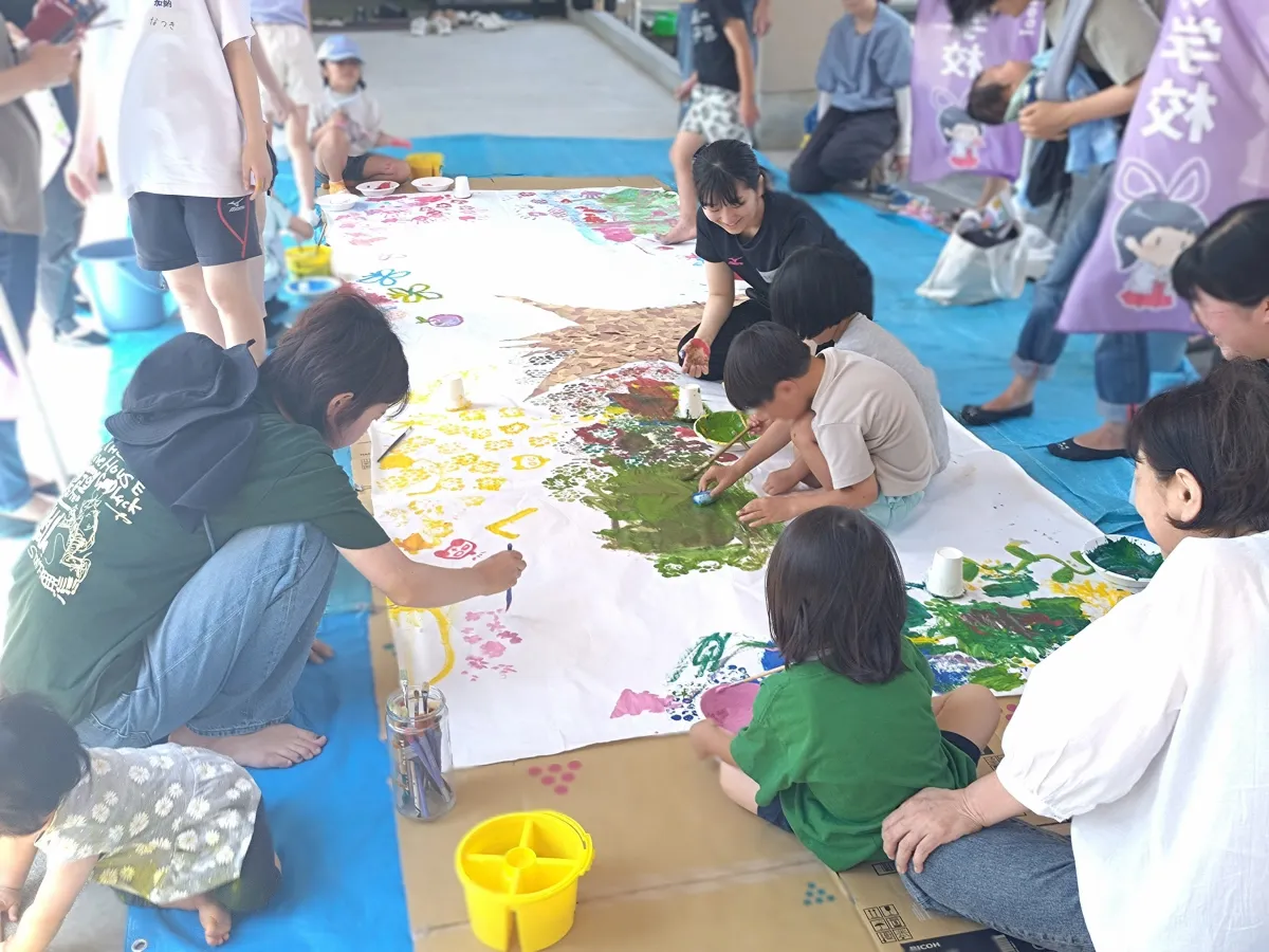 今回のイベントは、地域の親子が一緒になって参加できることを目的としたものです。晴天の中、約20組の親子が集まり、思い思いの大きな絵を描きました。描く対象として選ばれたのは、地域にある大きな木。参加者たちはこの木をテーマに、それぞれの想像力を生かした絵を仕上げていきました。