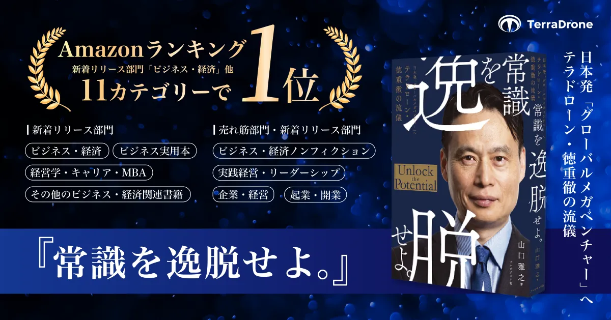 テラドローン株式会社が発表した書籍『常識を逸脱せよ。日本発「グローバルメガベンチャー」へテラドローン・徳重徹の流儀』が、Amazonの新着・売れ筋ランキングで複数の部門にて1位を獲得する快挙を成し遂げました。予約受付が始まった2025年5月16日から、瞬く間に多くの読者の興味を惹き、その中で『ビジネス・経済』を含む11のカテゴリーで最高の評価を得たことは、同社の成長と影響力を物語っています。
