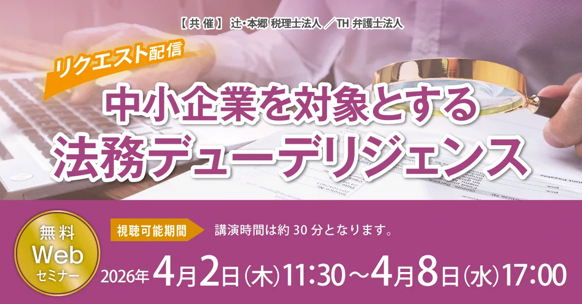 M&Aは企業の成長戦略として重要な手段ですが、その成功には多くのリスク管理が求められます。特に、中小企業における法務デューデリジェンス(法務DD)は、企業の健全な成長を支える基盤となるものです。2026年4月2日から再配信される「中小企業を対象とする法務デューデリジェンス」セミナーでは、法務DDの基本から実務に即した具体的な問題まで、専門家が詳しく解説します。