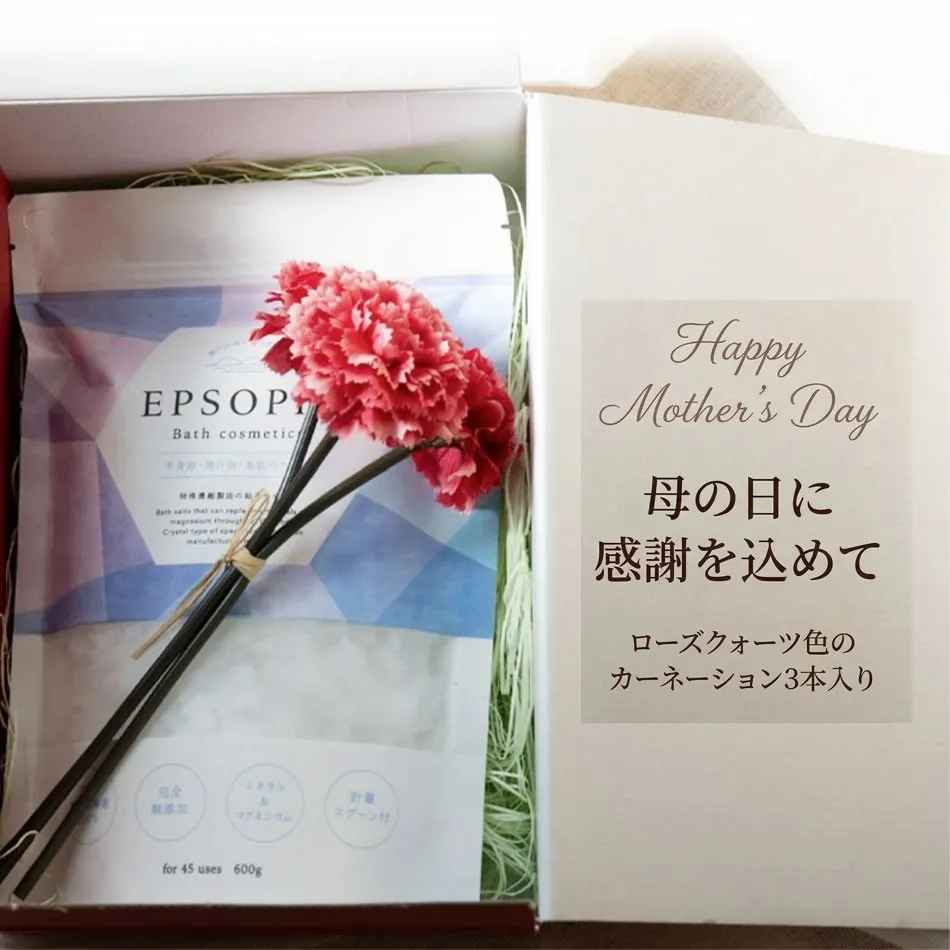 母の日に贈る心温まるバスソルト「エプソピア」とカーネーションのセット