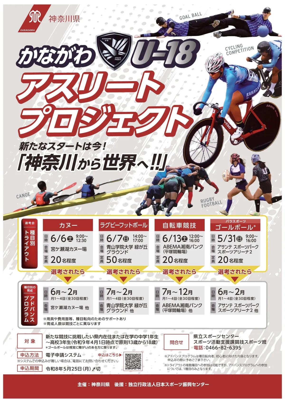 神奈川県は、将来のオリンピックやパラリンピックで活躍するアスリートを育てるために、「かながわU-18アスリートプロジェクト」を開始しました。これは、競技に挑戦したい中学生や高校生を対象にした新たな取り組みで、優れた才能を持つ若者を発掘・育成することを目的としています。