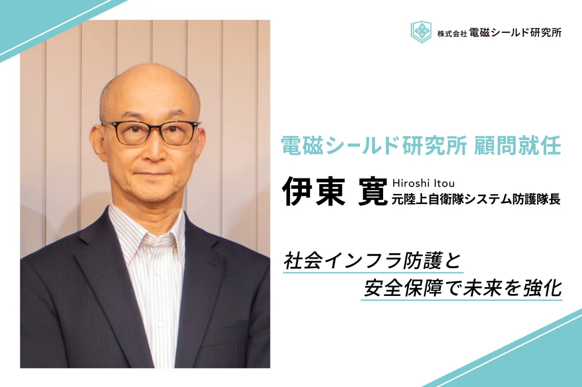 株式会社電磁シールド研究所(本社:東京都千代田区、代表取締役:石川裕也)は、元陸上自衛隊システム防護隊長である伊東寛氏を新たに顧問に迎えました。この人事は、同社が電磁波リスクに対する認識を高め、社会インフラを守るための具体的な対策を推進するための重要な一歩となります。