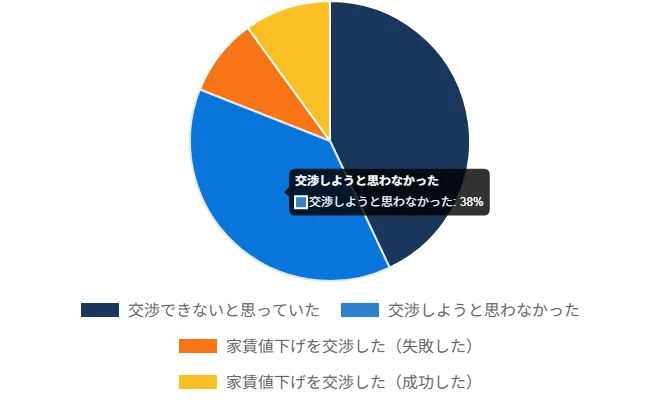 最後に、家賃更新時の値上げについて質問したところ、約71%の人が値上げ通告なしと回答しました。家賃据え置きが多いものの、29%は値上げを経験しており、その中でも交渉により家賃を据え置けた人が5.5%いることが興味深いです。