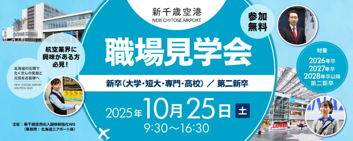 2023年10月25日(土)に北海道エアポート株式会社が主催する職場見学会が新千歳空港で開催されます。本イベントは、航空業界に興味を持つ学生や求職者に向けて、空港内の様々な職種をご紹介する貴重な機会です。