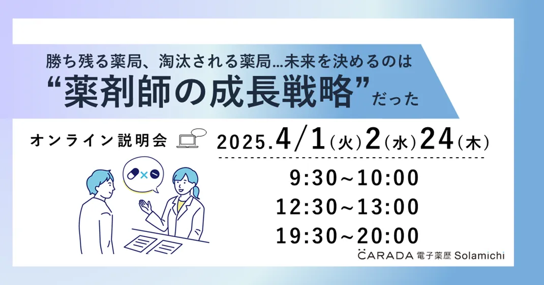 株式会社ソラミチシステムは、4月1日、2日、24日に開催する無料オンラインセミナーの追加日程を発表しました。このセミナーは、「勝ち残る薬局、淘汰される薬局…未来を決めるのは“薬剤師の成長戦略”だった」と題して、薬剤師育成についての重要なテーマに焦点を当てています。