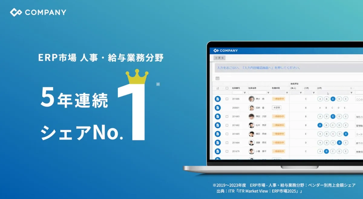 株式会社Works Human Intelligence(WHI)が開発・販売している統合人事システム「COMPANY」が、ITRの調査結果として発表された2025年の市場レポートで、人事・給与業務に関するERP市場のシェアで5年連続1位を獲得したことが明らかになりました。これは、WHIが2019年に設立されて以来、特にこの分野での競争力を強化してきた結果に他なりません。