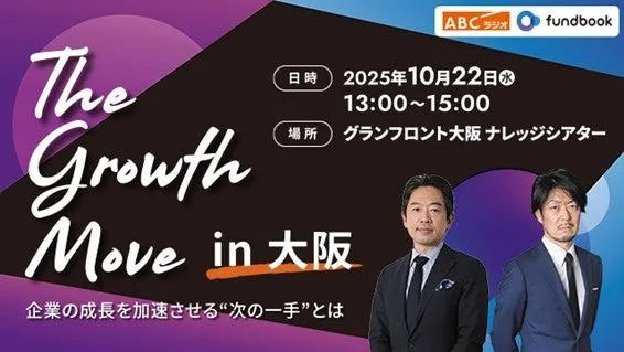 朝日放送ラジオ株式会社(ABCラジオ)と株式会社fundbookが共催する特別セミナー「The Growth Move in 大阪」が、2025年10月22日(水)にグランフロント大阪・ナレッジシアターにて開催されることが決定しました。このセミナーは、関西の企業経営者及び経営企画担当者を対象にしており、企業の成長を加速させるための新たな戦略を学ぶ貴重な機会となります。