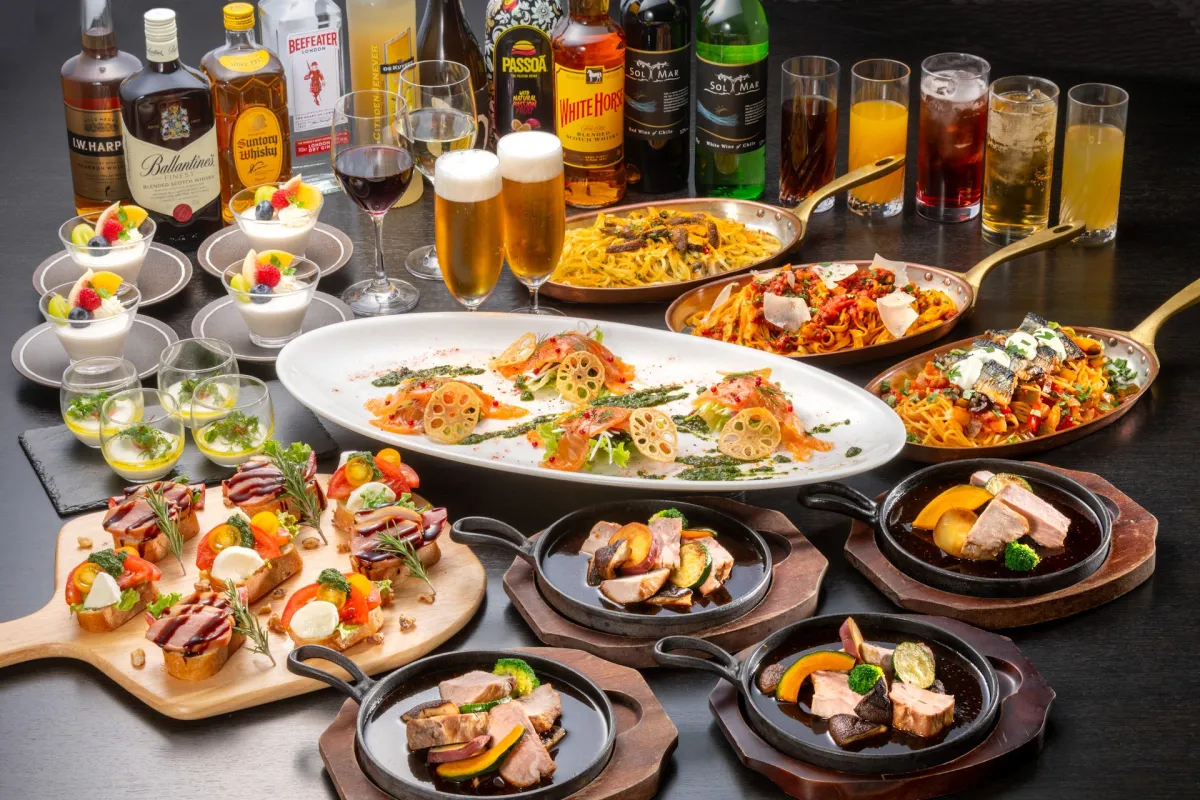 この飲み放題付きコース『燦(SAN)』では、地元食材の魅力を存分に感じることができます。コースは前菜から始まり、選べるパスタ、メインディッシュ、デザートまで、幅広い料理が提供されます。