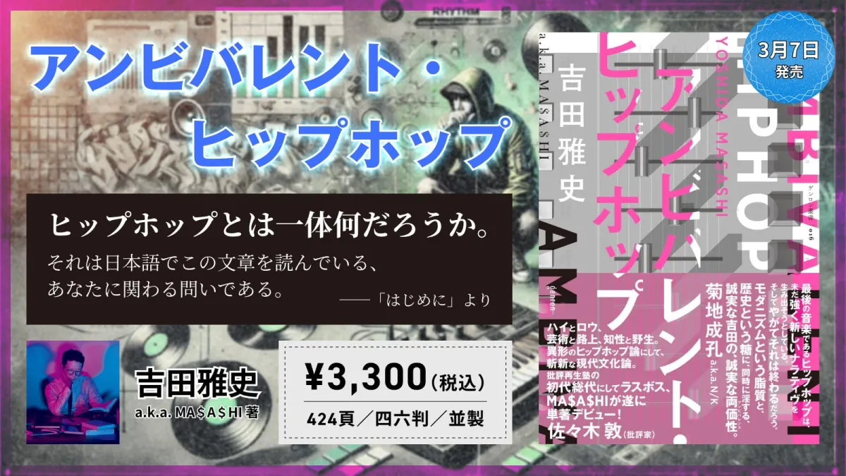 2025年3月7日、株式会社ゲンロンから吉田雅史による初の著書『アンビバレント・ヒップホップ』が全国流通を開始します。本書は、ヒップホップという音楽ジャンルを深く掘り下げ、特に日本におけるその意義と表現の多様性を探求しています。