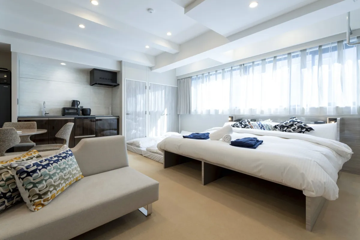 「ENT TERRACE GINZA PREMIUM」は、全6室の客室を持ち、各部屋は4名から5名まで宿泊可能です。客室には、キッチン、食器洗浄機、冷蔵庫、洗濯機、乾燥機が完備されており、滞在中に便利な設備が整っています。食材を買ってみんなで料理を楽しむことができ、まるで自宅にいるかのように過ごすことができます。特に、全室に畳のスペースを用意しており、日本文化を体感することも可能です。