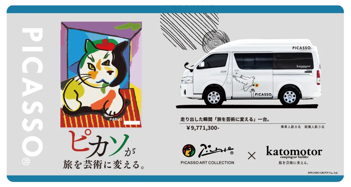 代表取締役の加藤健資氏は「アートとキャンピングカー、一見関連のないように思える二つの世界が、この『Pablo』で交差しています。ピカソの革新性から刺激を受け、自由な発想でキャンピングカー作りに挑戦しました。職人の手仕事で仕上げられたこの一台が、旅をもっと自由で創造的なものに変えてくれると信じています。」とコメントしています。