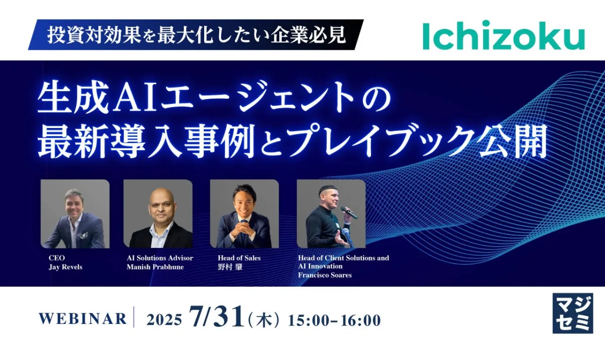 主催は、業界で注目を集めるIchizoku株式会社であり、協力として株式会社オープンソース活用研究所とマジセミ株式会社が参画しています。このウェビナーは、生成AIを利用して業務改善を目指す企業にとって、非常に有益な内容となっています。