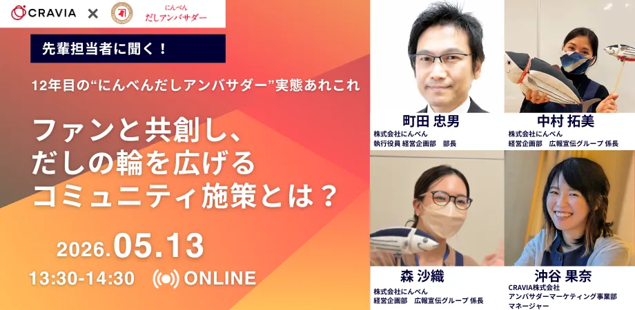 2024年に10周年を迎える「にんべんだしアンバサダー」プロジェクト。創業300年の歴史を持つ株式会社にんべんが展開するこのプロジェクトは、ファンと共に豊かな食文化を育むことを目的としています。本セミナーでは、これまでの取り組みや今後の展望について、実際の担当者から直接お話を伺う貴重な機会となります。