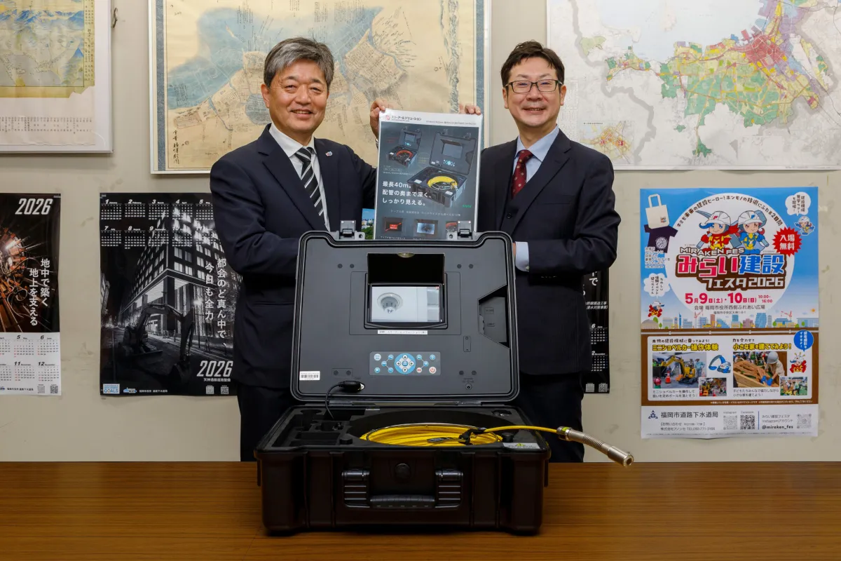 福岡県を拠点とするスリーアールソリューション株式会社は、福岡市道路下水道局に管内検査用カメラ「3R-FXS07-40M」を寄贈しました。このカメラはデジタル顕微鏡や工業用内視鏡を専門的に製造している同社の技術力が結集されています。福岡市道路下水道局の竹廣局長との意見交換を通じて、製品の特長や今後の利用方針について詳細に話し合いが行われました。
