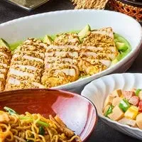 - - 選べるメインとデリのワンプレート(税抜980円~): 健康を意識したヘルシーなプレート。野菜は厚生労働省推奨の1日の野菜目標量の1/2量を達成。
