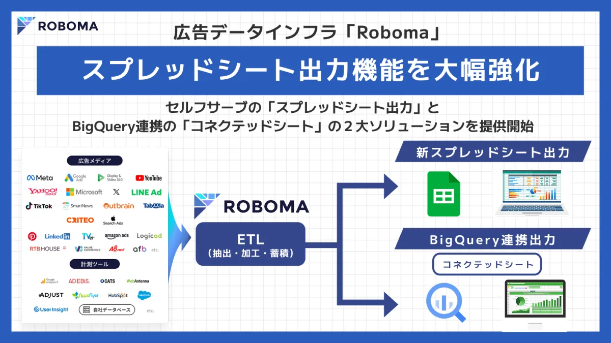 RoboMarketer株式会社が提供する広告データインフラ「Roboma」は、2026年1月から新機能として「スプレッドシート出力機能」の提供を開始することを発表しました。この新機能は、ユーザーが普段使っているGoogleスプレッドシートに広告レポートを自動で出力・更新することを可能にし、データ活用の効率化を図ります。
