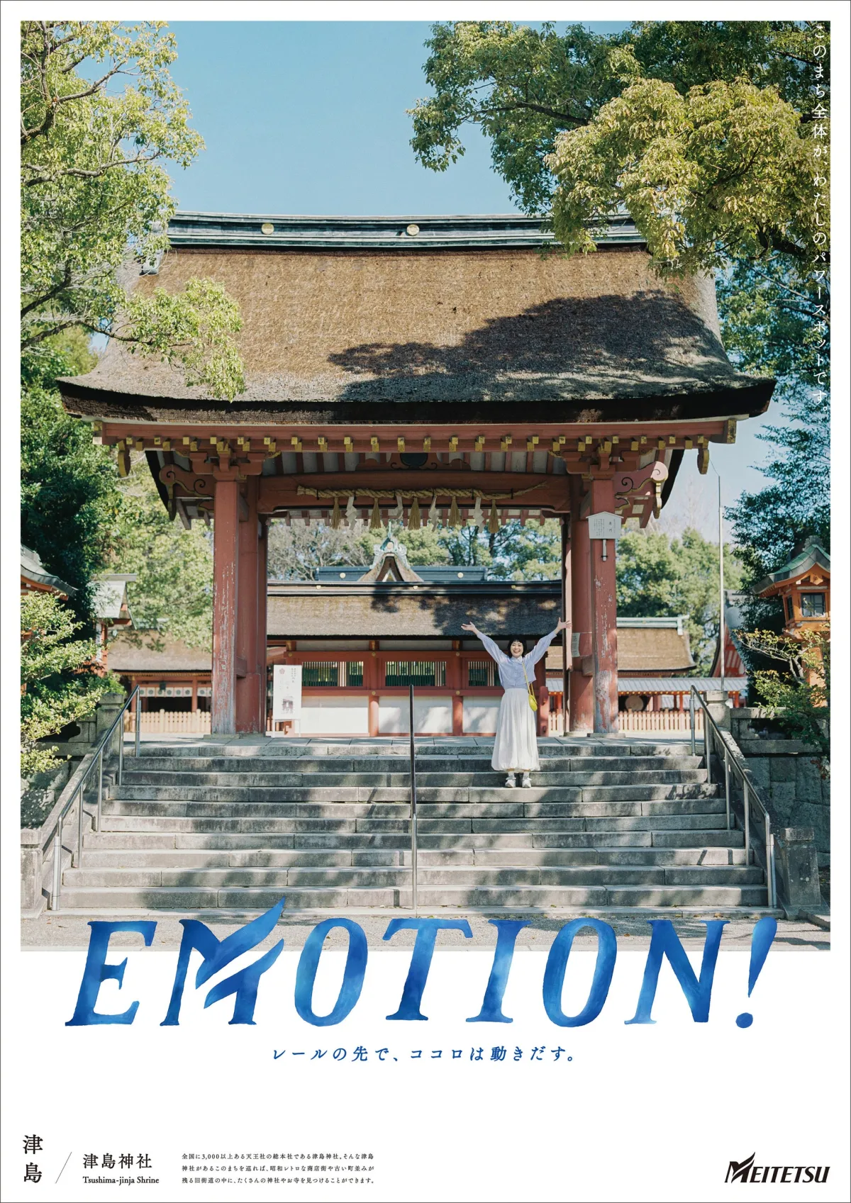 名古屋鉄道は、沿線地域の魅力を引き出すための取り組み、「EMOTION!」の第13弾を「津島篇」として9月26日から開始します。津島は濃尾平野の西部に位置し、交通と経済の要所として歴史を築いてきた町です。ここには、600年以上前から続く「尾張津島天王祭」をはじめ、文化と伝統が色濃く残る場所です。