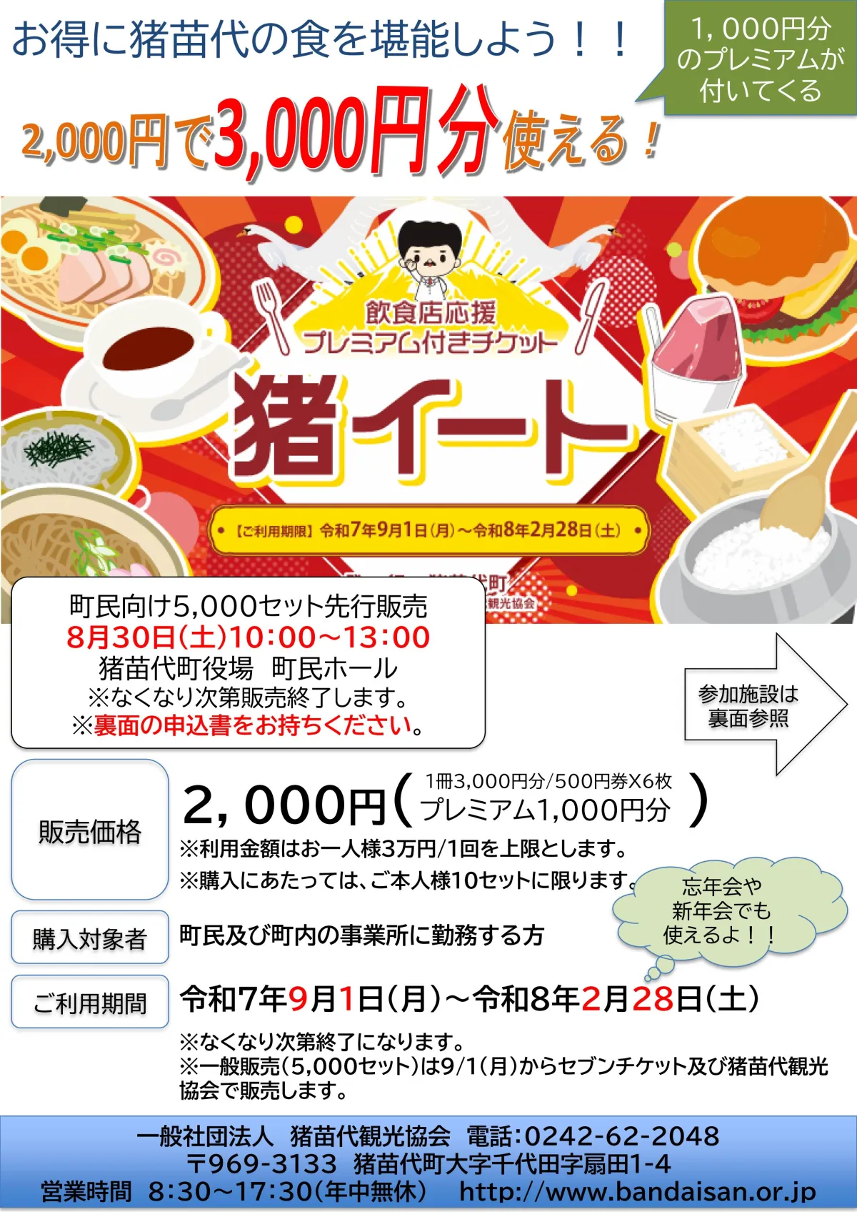 福島県の美しい猪苗代町で、9月1日から魅力的な食事券「猪イート」が一般販売開始されます。このプレミアム付き食事券は、地域の飲食店を応援する制度として、訪れる人々にお得な食事体験を提供します。