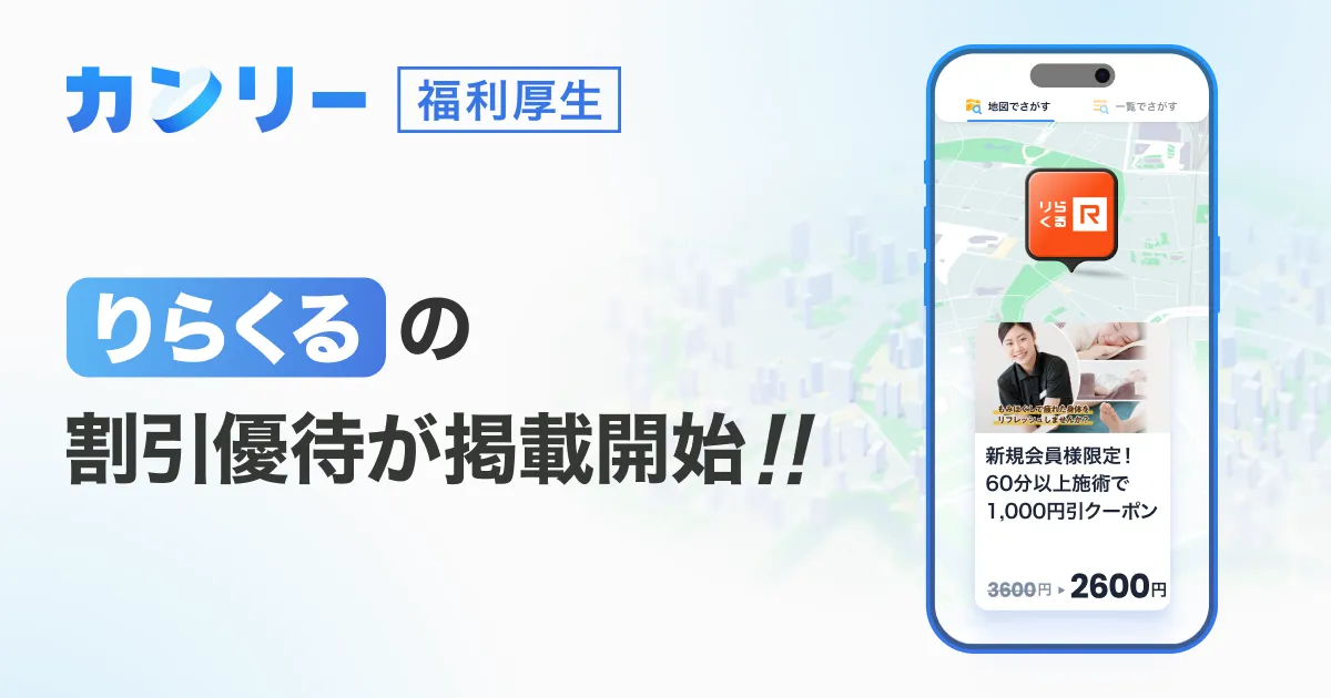 株式会社カンリーは、従業員の健康管理をサポートするため、リラクゼーションスペース「りらくる」と提携し、割引優待の提供を開始しました。この優待サービスは、「カンリー福利厚生」に登録された企業の従業員を対象としており、心身のリフレッシュを促進することを目的としています。