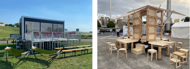 二つ目は「モバイルインフィル®」。この移動式の滞在型空間は、都市部のオープンスペースや道路を有効に活用し、自由に設置できるのが特徴です。ワークショップやイベント、人が集まる場所にぴったりです。
