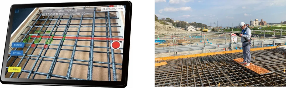 BAIASは、鉄筋コンクリート構造物の配筋検査を簡単に行える、革新的なシステムです。iPad ProのLiDARセンサーとカメラを利用し、鉄筋の本数や径、間隔を高精度で計測します。このシステムは国土交通省の実施要領に則った全計測項目に対応しており、業界での信頼性を高めています。