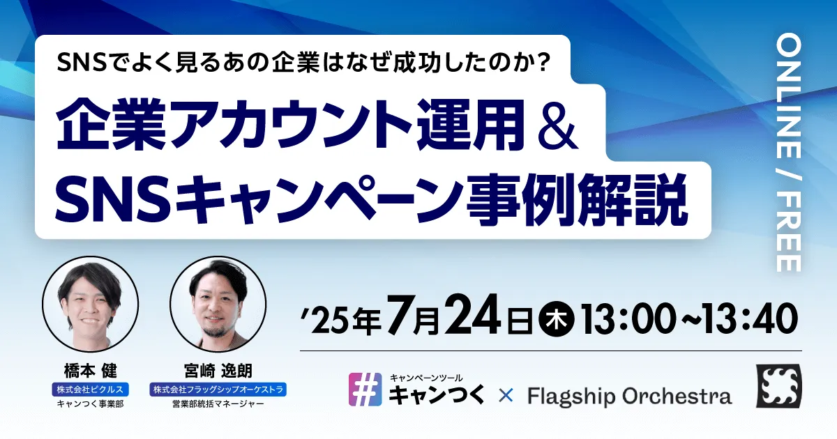 2025年7月24日、株式会社ピクルスが主催する無料ウェビナー「SNSでよく見るあの企業はなぜ成功したのか?立ち上げ当初〜現在までのリアルを大公開!」がオンラインで開催されます。このイベントは、SNSマーケティングに関心を持つ企業担当者を対象に、実際に成功を収めた企業アカウントの運用ノウハウを徹底的に解説するものです。