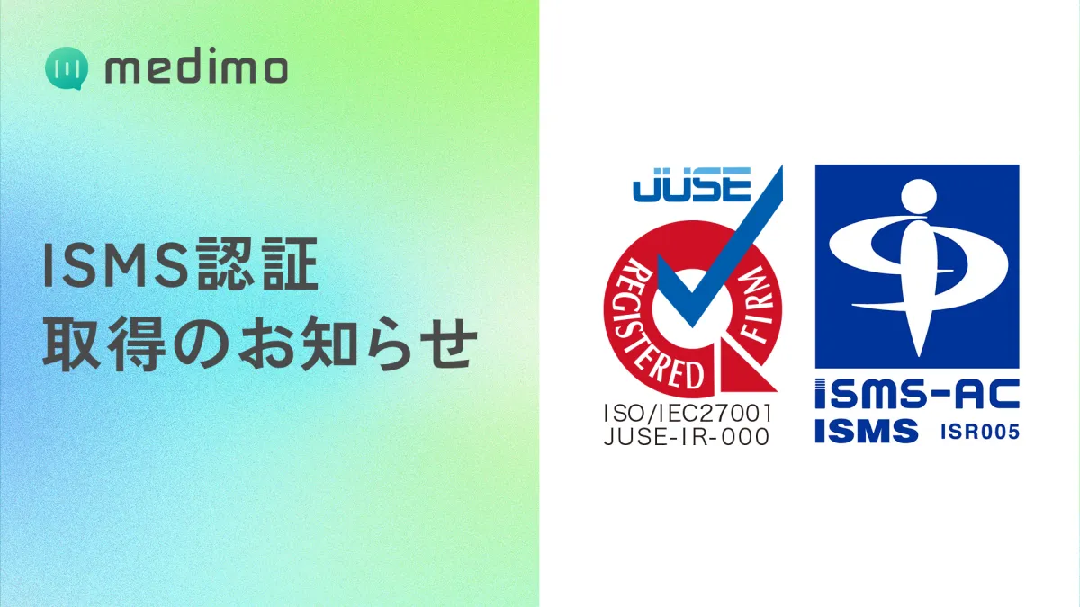 この認証により、第三者機関からの評価を受け、当社の情報セキュリティの体制が適切に運用されていることが確認されました。医療機関の皆様に安心して『medimo』を使用していただくために、今後も安全性の維持と向上に努めていきます。