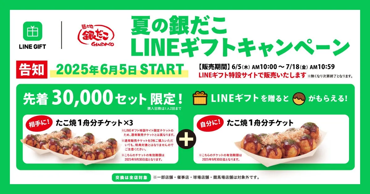 2025年6月5日から、築地銀だこを運営する株式会社ホットランドホールディングスが、特別なLINEギフトキャンペーンを開始します。このキャンペーンでは、お友達にたこ焼きの引換チケットを贈ることで、贈った相手も贈り主も共に美味しいたこ焼きを楽しめる特典が用意されています。