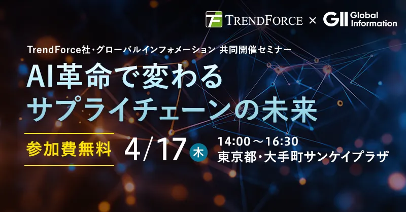 2025年4月17日、東京都大手町で、株式会社グローバルインフォメーションと台湾のTrendForce社が共催する無料セミナー「AI革命で変わるサプライチェーンの未来」が開催されます。これは、急速に進化するAIと高性能コンピューティング技術が、どのようにグローバルな半導体需要を変えていくのかを探求するための重要な機会です。