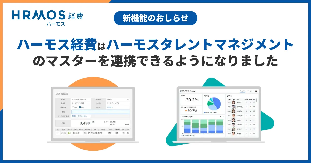 初期設定の簡素化: 新規で「ハーモス経費」を導入する際、必要なマスター登録を「ハーモスタレントマネジメント」から自動で取り込むことができ、手間が省かれます。