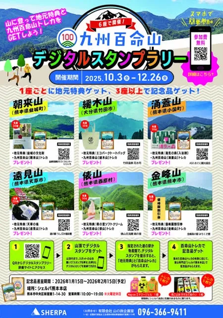 九州百命山デジタルスタンプラリーは、山を楽しむことで健康を促進し、地域の魅力を発見する素晴らしいイベントです。参加は無料なので、ぜひこの機会に美しい九州の自然と地域の特典を体験してみてはいかがでしょうか?皆さんのご参加を心よりお待ちしております!