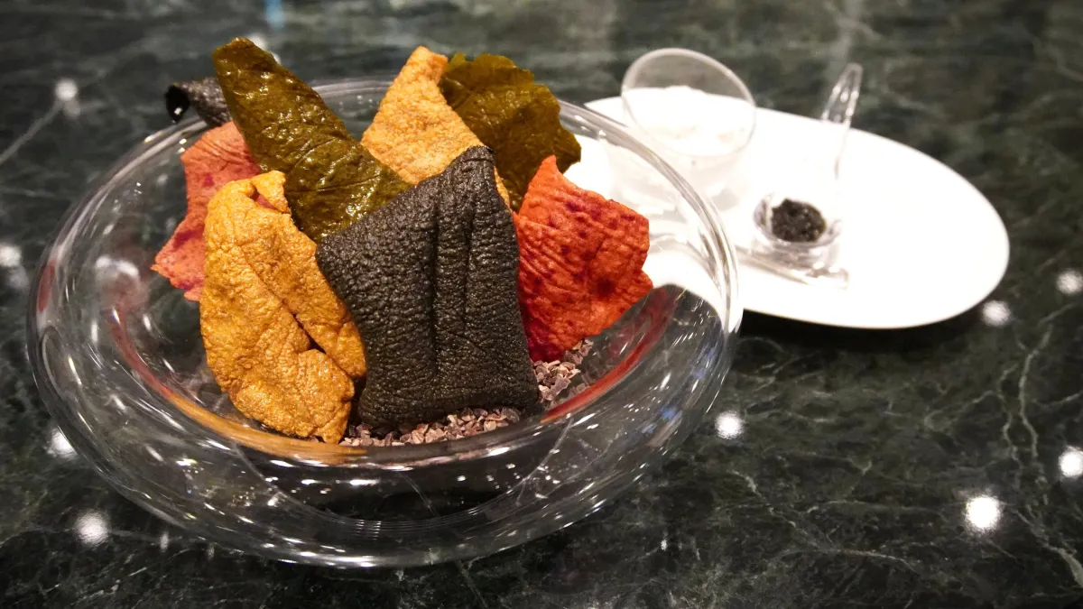 軽快な食感のチップスに、キャビアの旨味が加わる一皿です。