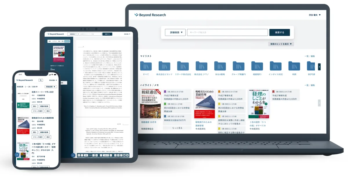 Beyond Researchでは、税務・会計に関する法令や判例、経済、経営など、幅広いテーマの実務書籍が提供されます。また、2023年1月からはBeyond Researchオリジナルのコンテンツも提供予定で、さらなる充実が期待されています。