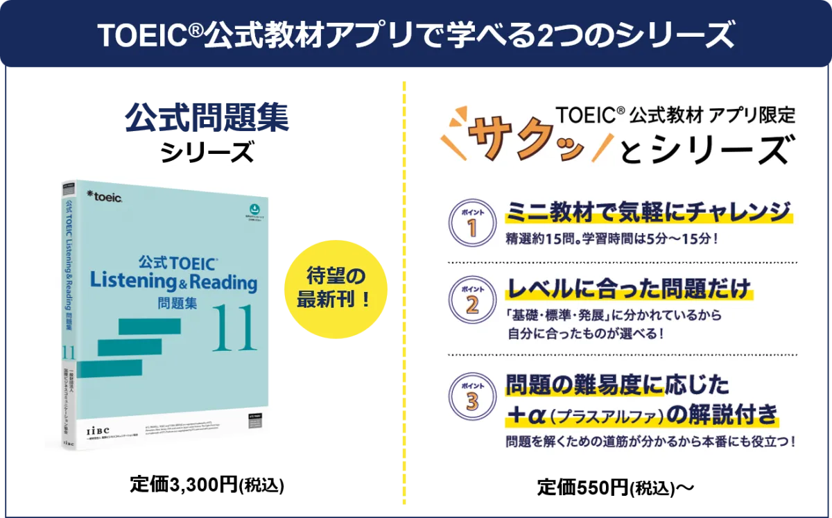 2025年6月16日、国際ビジネスコミュニケーション協会(IIBC)から、TOEIC公式教材アプリに新たな教材が追加されることが発表されました。新しいアップデートにより、公式問題集シリーズの最新刊である『公式TOEIC Listening & Reading 問題集11』や、パート別の学習が可能な『TOEIC公式教材アプリ限定 サクッとシリーズ』が追加されます。これにより、全ての試験パートを網羅することができ、アプリの利便性が一層向上します。