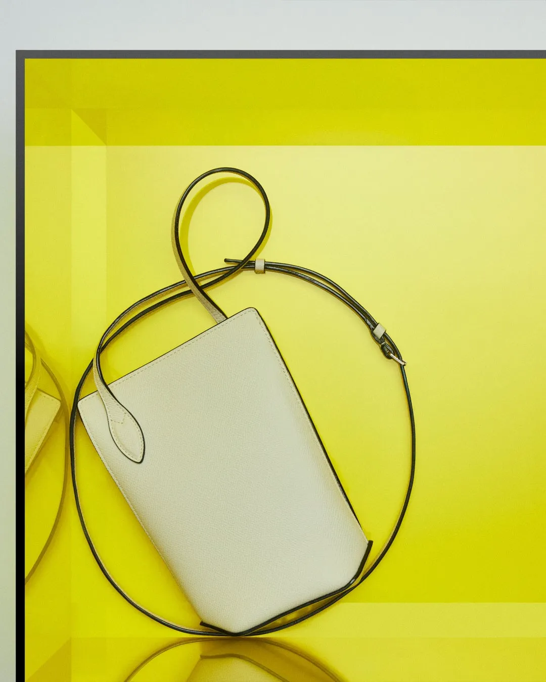 さらに、「Vライン ビューティーケース マイクロ」は、ビューティーケースとクロスボディバッグの機能を融合させた新しいスタイルを提案します。このアイテムは、ミレプンテ ソフトレザーと内部のファブリックのコントラストが、キャンペーンで表現される幾何学的な美しさと共鳴しており、実用性と美を一体として感じさせてくれます。