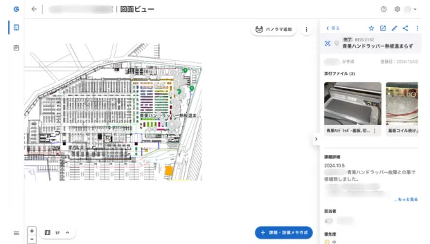「ゲンコネ」は、設備管理に特化したクラウドアプリケーションであり、図面やパノラマ画像を活用した情報共有が特徴です。この機能により、関係者全員が最新の現場状況を把握できるため、画期的な業務の効率化が図られています。教育ツールとしての用途も持ち合わせており、新たなスタッフへの指導をオンラインで行うことも可能です。