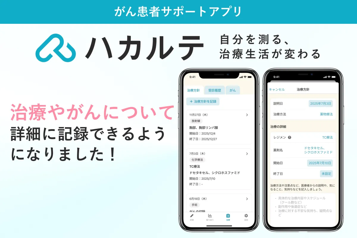 がんがより身近な存在となっている現代において、がん患者を支えるためのアプリ『ハカルテ』は、その機能を拡充し続けています。今後も医療の現場をサポートするために、さまざまな機能の追加に努めてまいります。