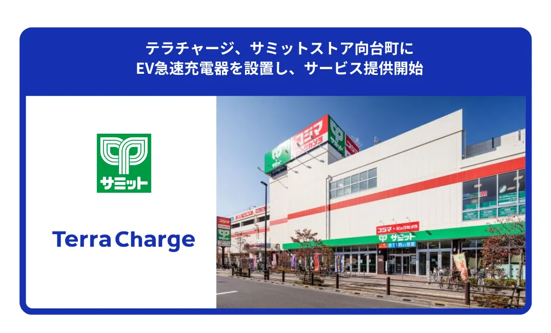 Terra Charge株式会社が、東京都西東京市のサミットストア向台町店に急速EV充電器を2基設置したことをお知らせします。この新しい充電インフラは、地域住民の皆様の日常的な買い物をサポートし、電気自動車(EV)を利用する方々にとってますます便利なものとなるでしょう。