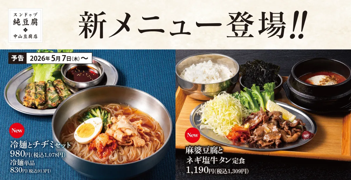 東京都にあるスンドゥブ専門店「中山豆腐店」が、2026年5月7日より新しいグランドメニューを提供開始します。夏にぴったりの新メニューは、ネギ塩牛タンや冷麺、ビビン麺、サーモンユッケビビンバなど、心躍るラインアップが揃っており、多くの方々に楽しんでもらえること間違いありません。
