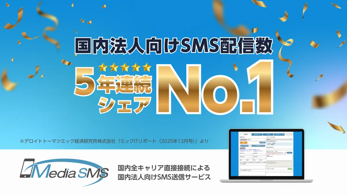 「メディアSMS」が5年連続で法人向けSMS配信数No.1