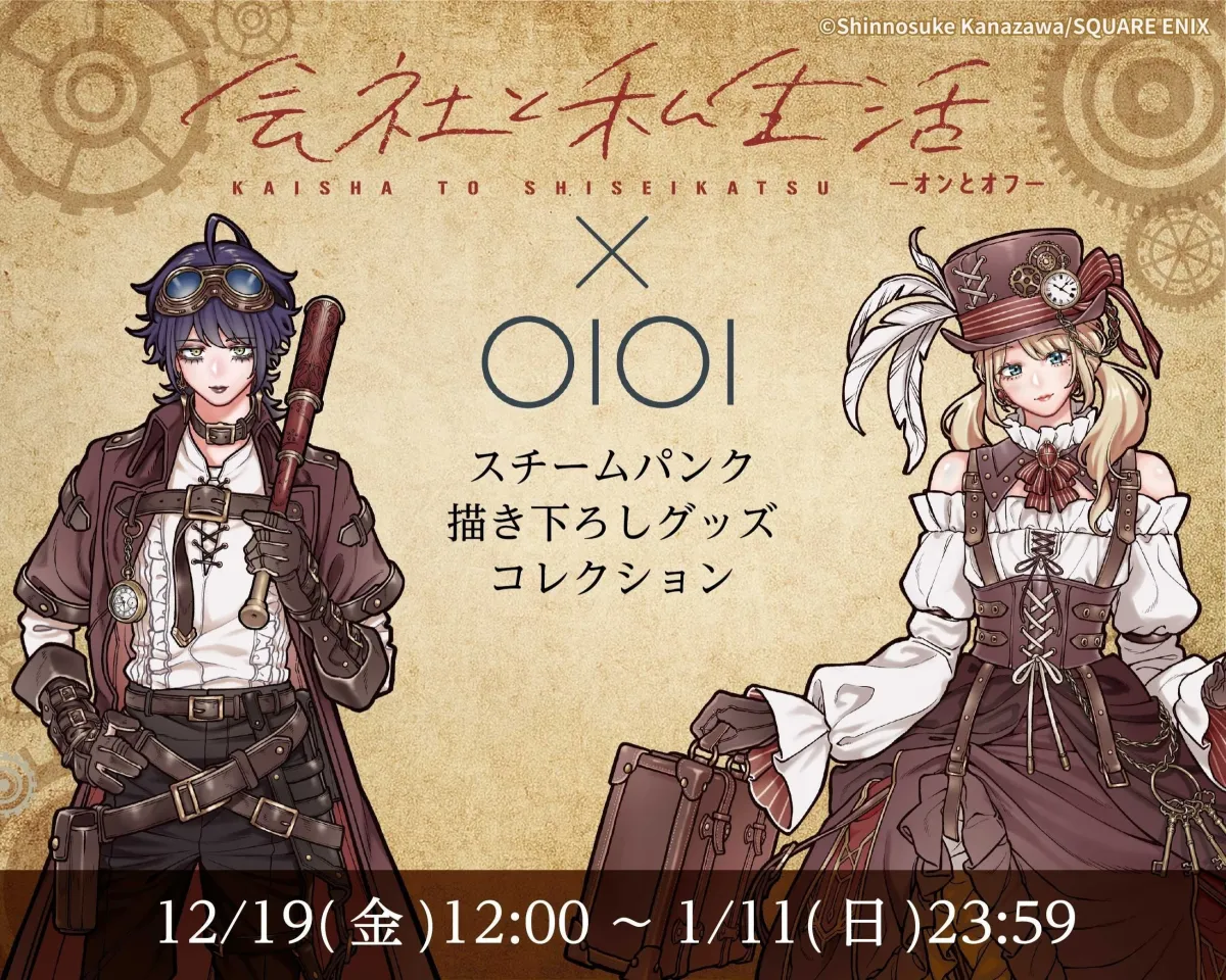 株式会社丸井が運営するネット通販「マルイウェブチャネル」にて、金沢真之介原作の人気漫画『会社と私生活-オンとオフ-』とのコラボレーショングッズが登場。イベント名は「『会社と私生活-オンとオフ-』スチームパンク描き下ろしグッズコレクション by OIOI」です。