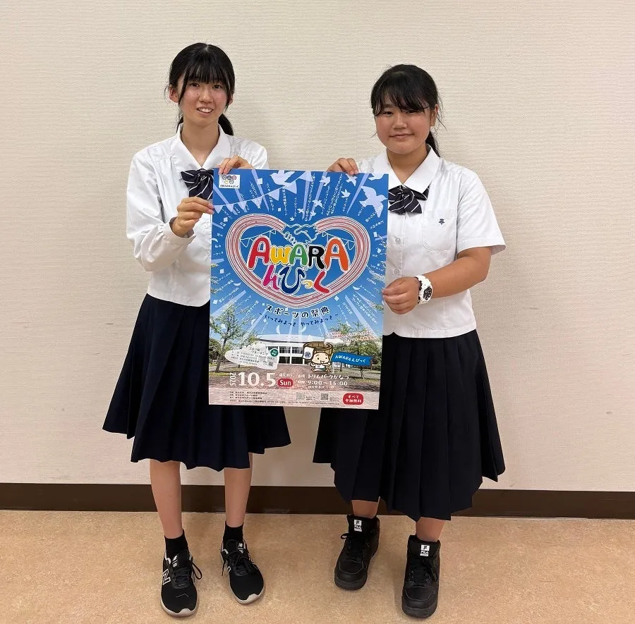 福井県あわら市が主催する新しい市民参加型スポーツイベント「AWARAんぴっく」。このイベントのシンボルとも言えるロゴを制作したのは、県立金津高校美術部の3年生、原唯月さんと開高愛佳さんです。彼女たちの手描きで生まれたロゴは、6ヶ月間の制作を経て完成しました。