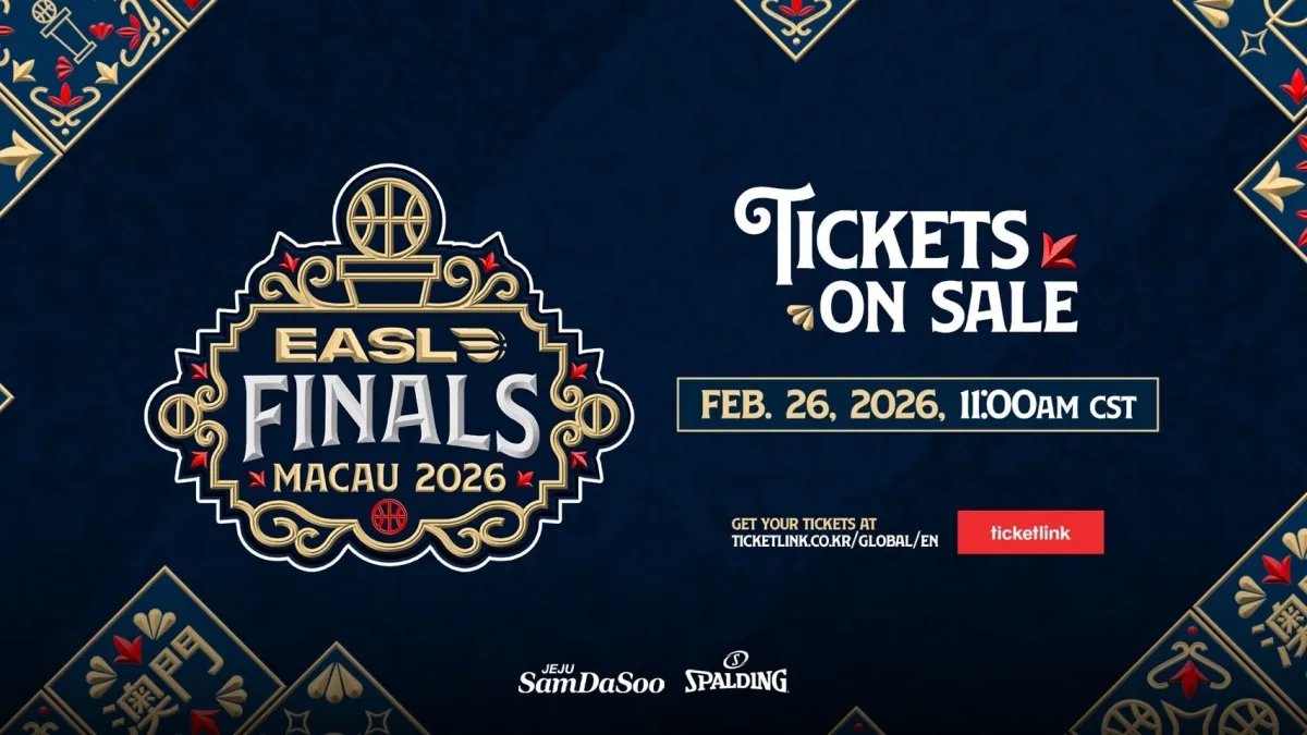 東アジアスーパーリーグ(EASL)は、2026年3月18日(水)から3月22日(日)にかけて開催される「EASL FINALS MACAU 2026」プレーオフの試合観戦チケットの販売を発表しました。このチケットは、EASLのオフィシャルパートナーである「Ticketlink」を通じて、2026年2月26日(木)から購入可能になります。