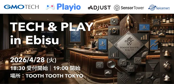 株式会社PLAYIOとGMO TECH株式会社が共同主催する「TECH & PLAY in Ebisu」は、2026年4月28日(火)に東京都渋谷区のTOOTH TOOTH TOKYOで開催されます。このイベントは、ゲームおよびアプリ業界のマーケターを対象にした交流の場として、実務に基づく知識や最新トレンドを共有することを目的としています。
