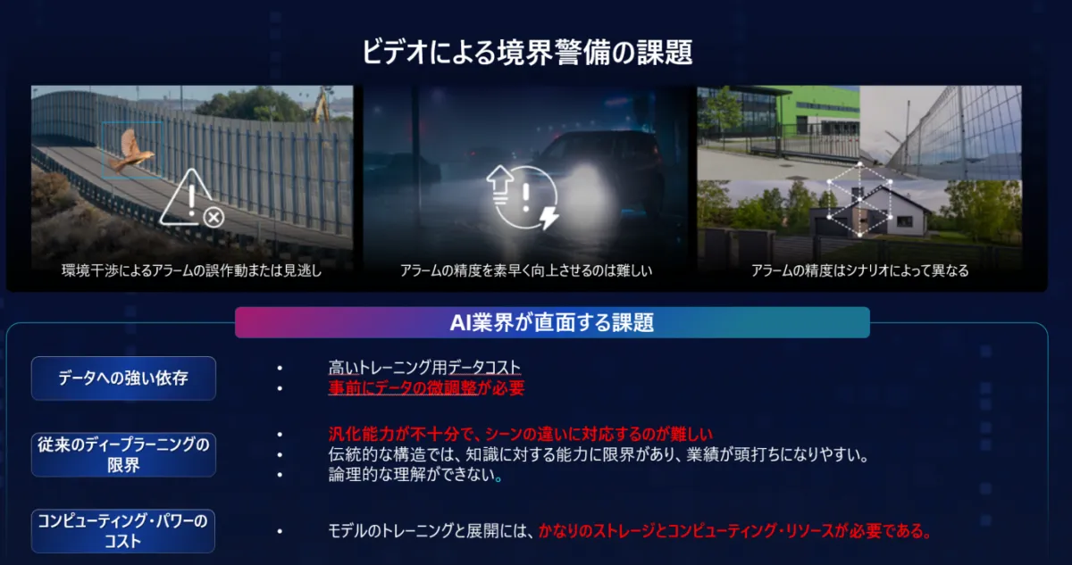 従来の境界警備システムは、環境の影響を受けやすく、誤警報や検知漏れが多発していました。特に、低照度環境での微小物体の検出や、複雑な照明条件下での性能が問題視されていました。また、過去のディープラーニングモデルは、汎用性が低く、高精度を達成するためには多くのトレーニングデータが必要でした。これらの課題を解決することが、Hikvisionの新AIカメラの重要な目標となっています。