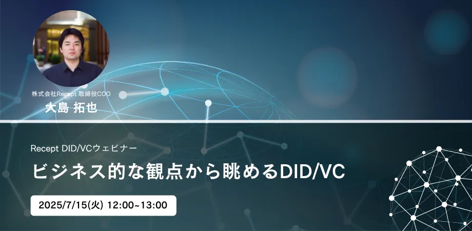 2025年7月15日(火)12:00から13:30にかけて、ウェビナー「ビジネス的な観点から眺めるDID/VC」が開催されます。参加は無料で、インターネットを通じてGoogle Meetにて行われるため、申し込み後にリンクが送られます。アーカイブ配信は行われないため、当日参加が必須です。