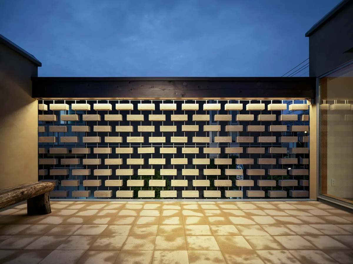 関東ロームの特性を最大限に活かした設計も大きな魅力です。関東ロームは蓄熱性、断熱性、吸放湿性に優れており、快適な室内環境を実現しています。南面と北面には関東ロームブロックによるスクリーンを設置。日射調整やプライバシー保護だけでなく、通風による自然な温度調節も可能にしています。