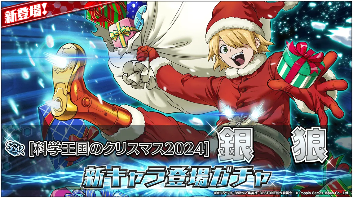 新たに追加されるキャラクターは、[SSR][科学王国のクリスマス2024]銀狼。高いHPと防御力を監有し、突撃タイプであるこのキャラクターは、特に敵の遠距離攻撃に対して、味方の防御力を向上させるスキルを持っています。これにより、戦闘の主導権を握ることができるでしょう。また、味方の突撃タイプキャラクターの攻撃力も増加させるため、戦術面での優位性を確保することが可能です。