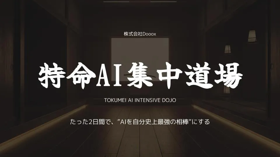 Doooxの新しいプログラム「特命AI集中道場」は、経営者やビジネスリーダーにとっての貴重な機会です。この機会に、AIを自分の相棒として関係を深め、自社の強みとして活用してみませんか?