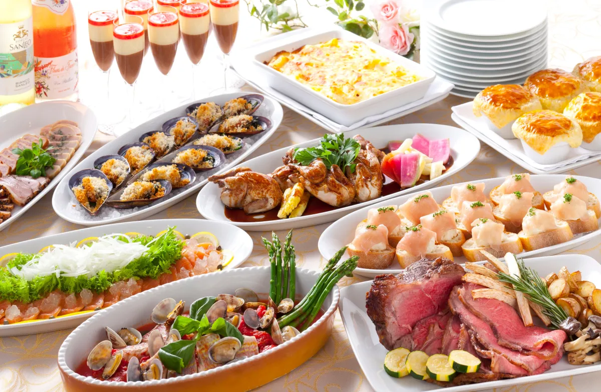 広々としたバイキング会場で、和・洋・中のホテルメニューが勢揃い。お好きなものを好きなだけお召し上がりいただけます。